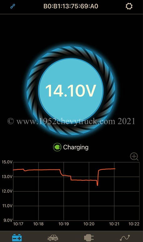 battery was struggling. An Antel BM300 battery monitor was purchased. This is an excellent device and it connects
